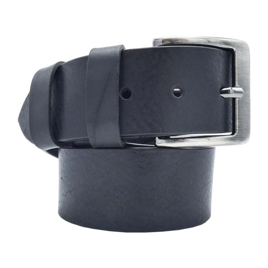 Cinturón de piel de 4 centímetros con hebilla artesanal de zamak satinado.