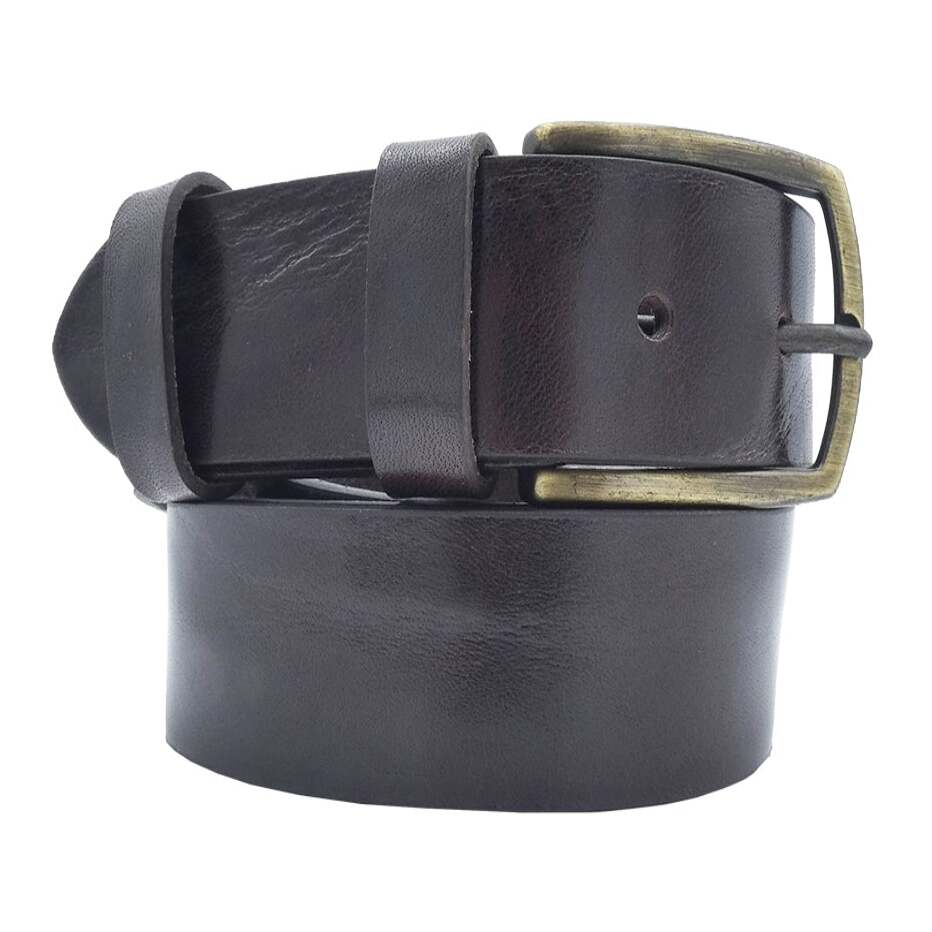3.5 centimeter wrinkled leather belt with handcrafted zamak buckle in two finishes: aged brass and satin nickel.